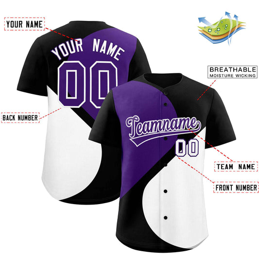 Custom Black Purple-White Color Block Personalized Half Heart Pattern Authentic Baseball Jersey Limited