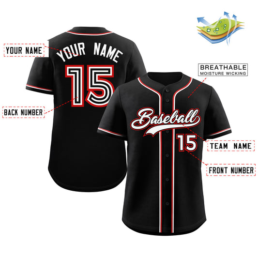 Custom Black White-Red Classic Style Authentic Baseball Jersey Limited