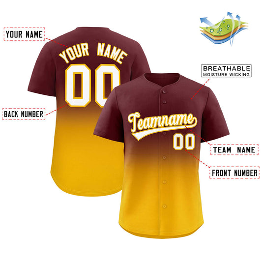 Custom Burgundy Yellow Gradient Fashion Authentic Baseball Jersey Limited