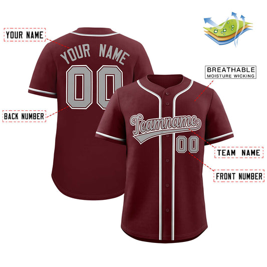 Custom Burgundy Gray Stripe Fashion Authentic Baseball Jersey Limited
