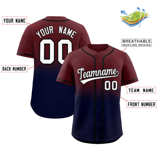 Custom Burgundy Navy Gradient Fashion Authentic Baseball Jersey Limited