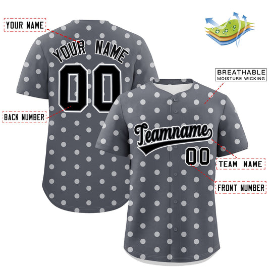 Custom Dark Gray White Personalized Polka Dot Graffiti Pattern Authentic Baseball Jersey Limited
