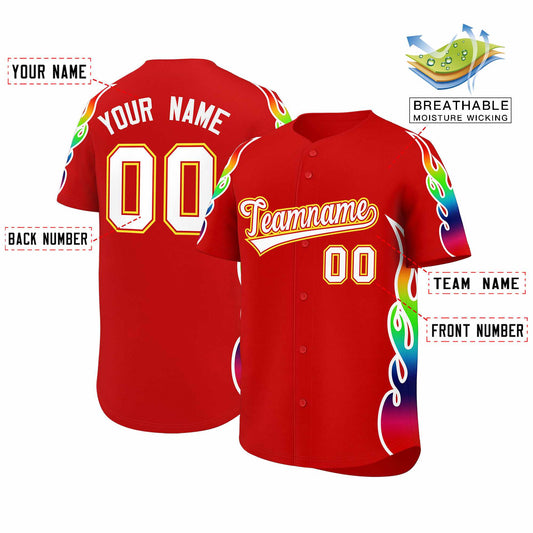 Custom Red Graffiti Pattern Personalized Multicolored Flames Print Authentic Baseball Jersey Limited