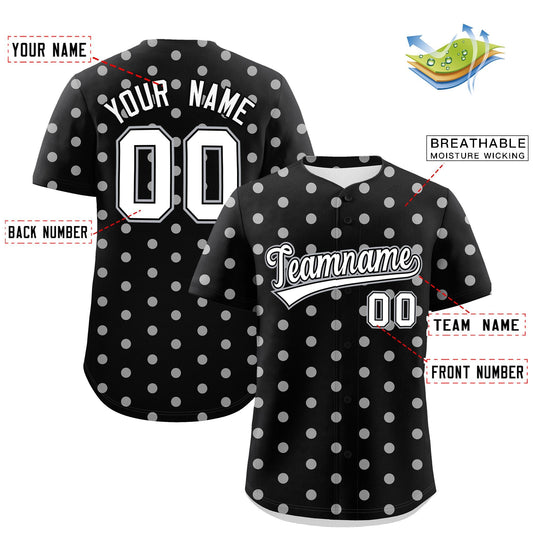 Custom Black White Personalized Polka Dot Graffiti Pattern Authentic Baseball Jersey Limited