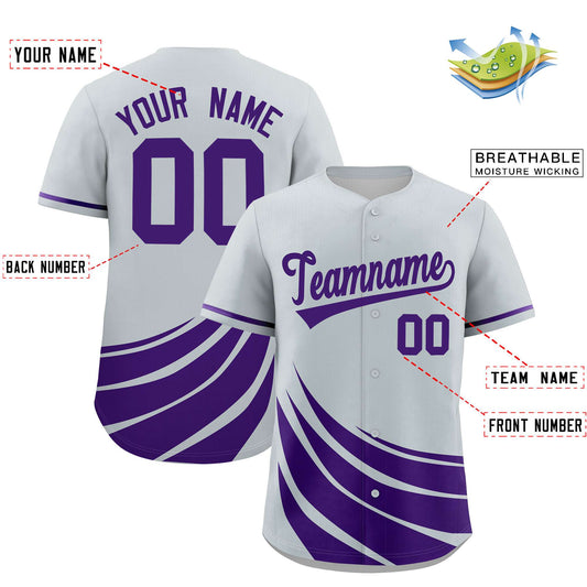 Custom Silver Purple Wind Mark Graffiti Pattern Authentic Baseball Jersey Limited