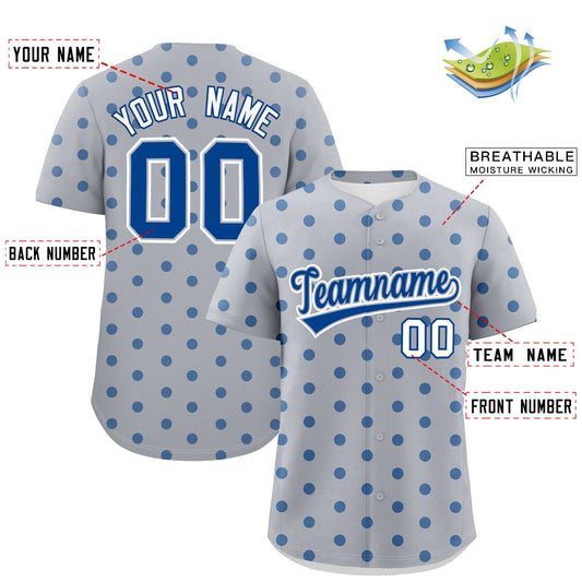 Custom Gray Royal Personalized Polka Dot Graffiti Pattern Authentic Baseball Jersey Limited