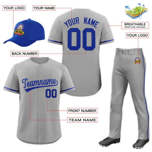 Custom Gray Royal Blue Classic Style Baseball Uniform Jersey/Pants/Hat Package For Team Limited