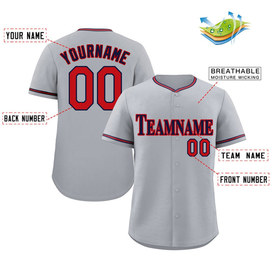 Custom Gray Navy-Red Classic Style Authentic Baseball Jersey Limited