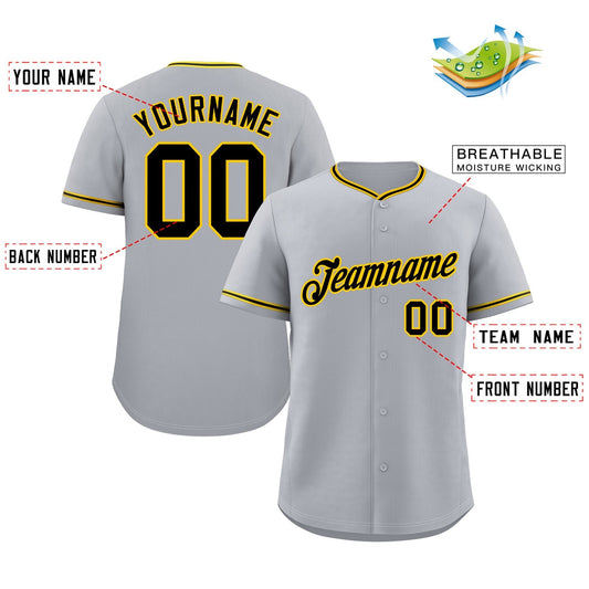 Custom Gray Black-Gold Classic Style Authentic Baseball Jersey Limited