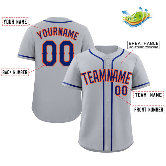 Custom Gray Royal-Orange Classic Style Authentic Baseball Jersey Limited