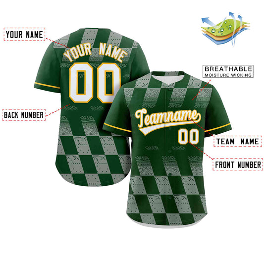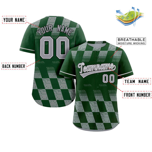 Custom Green Gray Grid Speckles Color Block Design Authentic Baseball Jersey Limited