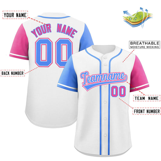Custom White Powder Blue and Pink Raglan Sleeves Authentic Baseball Jersey Limited