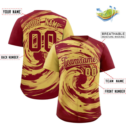 Custom Khaki Crimson Swirl Graffiti Pattern Authentic Baseball Jersey Limited