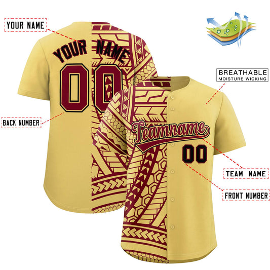 Custom Khaki Crimson Split Fashion Tribal Pattern Authentic Baseball Jersey Limited