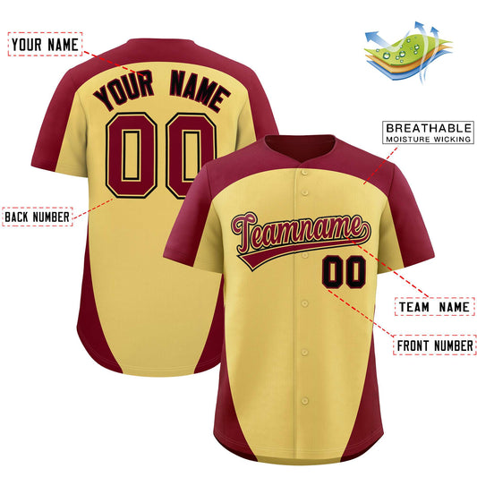 Custom Khaki Crimson Personalized Color Block Authentic Baseball Jersey Limited