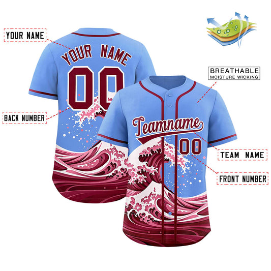 Custom Light Blue Wave Graffiti Pattern Authentic Baseball Jersey Limited