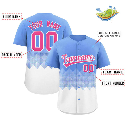 Custom Light Blue White Grid Blur Pattern Authentic Baseball Jersey Limited
