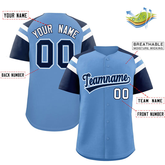 Custom Light Blue Navy Contrast Raglan Sleeves Authentic Baseball Jersey Limited