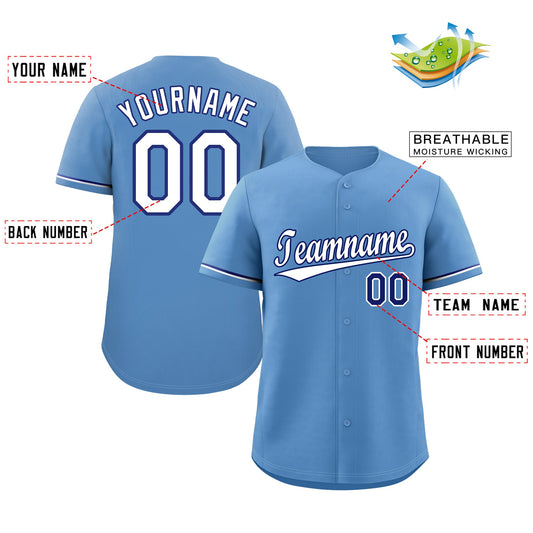 Custom Light Blue White-Royal Classic Style Authentic Baseball Jersey Limited