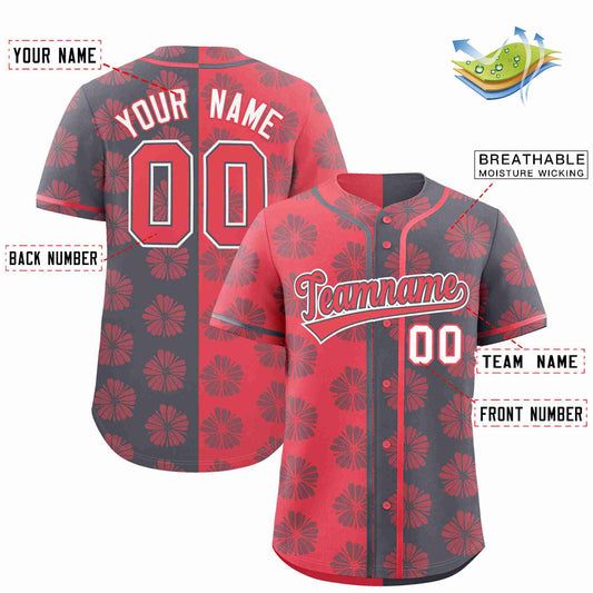 Custom Light Red Dark Gray Split Fashion Flower Graffiti Pattern Authentic Baseball Jersey Limited