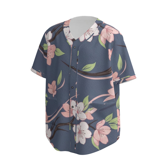 Custom Navy Pink Cherry Blossom Branch Japanese Art Fashion Textured Baseball Jersey Limited