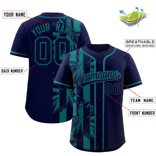 Custom Navy Aqua Split Fashion Coconut Tree Design Authentic Baseball Jersey Limited