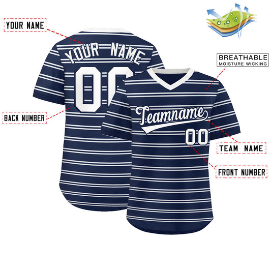 Custom Navy White Personalized Horizontal Stripe Authentic Pullover Baseball Jersey Limited