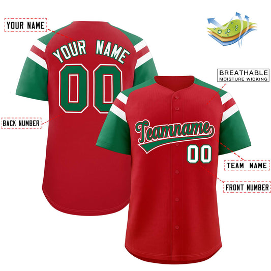 Custom Red Kelly Green Contrast Raglan Sleeves Authentic Baseball Jersey Limited