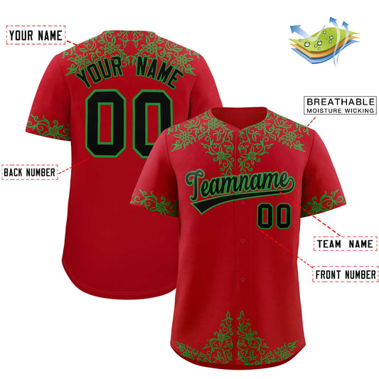 Custom Red Kelly Green Baroque Style Personalized Baseball Jersey Limited