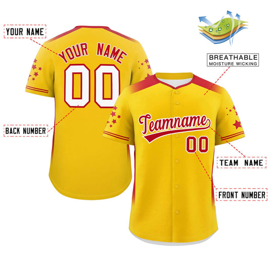 Custom Gold Red Gradient Side Personalized Star Pattern Authentic Baseball Jersey Limited