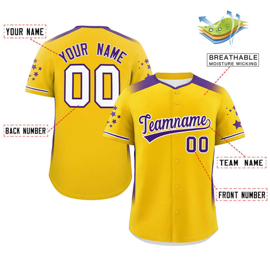 Custom Gold Purple Gradient Side Personalized Star Pattern Authentic Baseball Jersey Limited