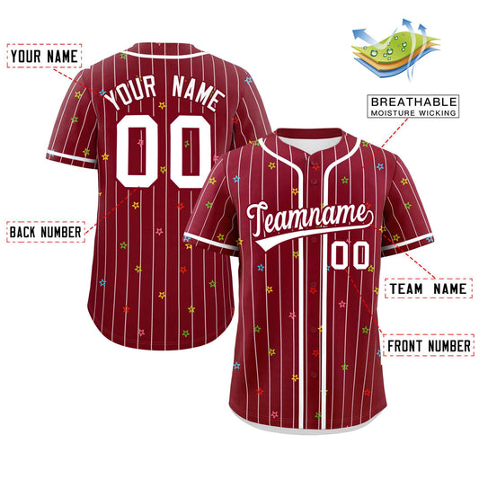 Custom Crimson White Stripe Fashion Personalized Star Pattern Authentic Baseball Jersey Limited
