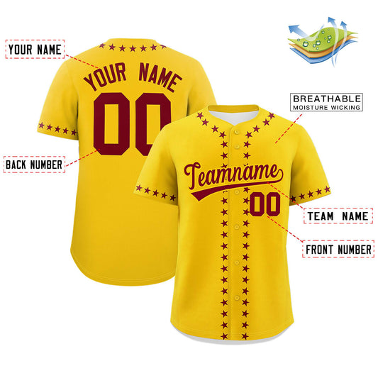 Custom Gold Crimson Gradient Side Personalized Star Pattern Authentic Baseball Jersey Limited