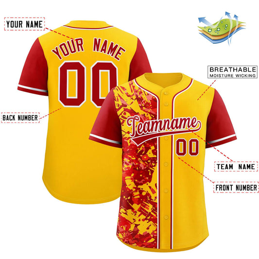 Custom Yellow Red Split Personalized Graffiti Raglan Sleeve Authentic Baseball Jersey Limited
