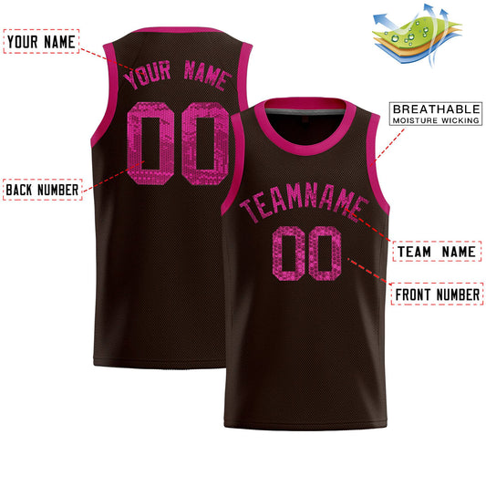 Custom Brown Sequined Tops Athletic Basketball Jersey Limited
