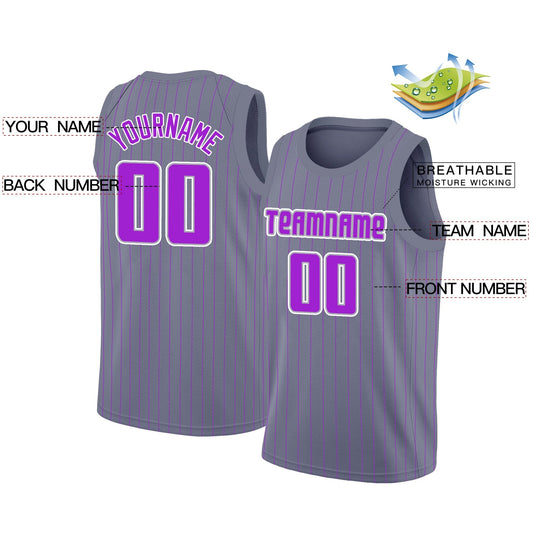 Custom Dark Gray Purple-White Stripe Fashion Tops Basketball Jersey Limited