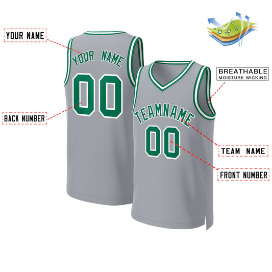 Custom Gray Kelly Green-White Classic Tops Basketball Jersey Limited