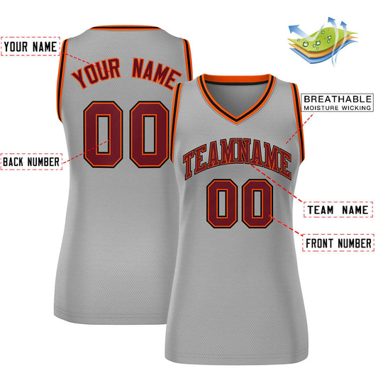 Custom Gray Maroon-Black Classic Tops Mesh Basketball Jersey for Women Limited