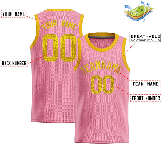 Custom Light Pink Sequined Tops Athletic Basketball Jersey Limited