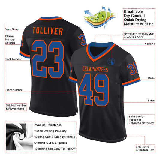Custom Black Blue-Orange Mesh Authentic Throwback Football Jersey Limited