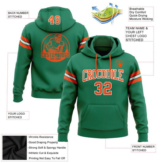 Custom Stitched Kelly Green Orange-White Football Pullover Sweatshirt Hoodie Limited