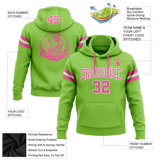Custom Stitched Neon Green Pink-White Football Pullover Sweatshirt Hoodie Limited