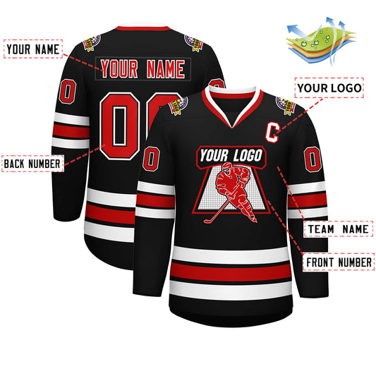 Custom Black Red Black-White Classic Style Hockey Jersey Limited