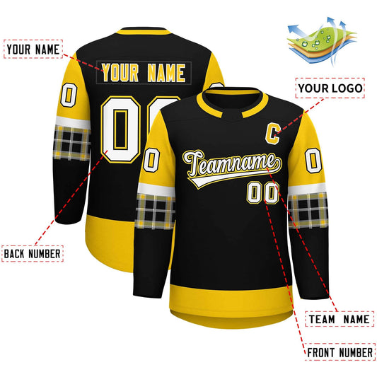 Custom Black Gold Black-White Classic Style Hockey Jersey Limited