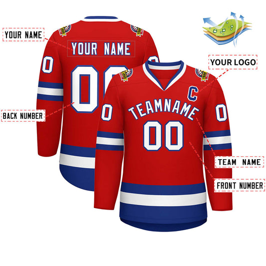 Custom Red White-Royal Classic Style Hockey Jersey Limited