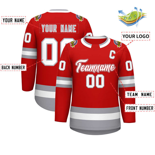 Custom Red White Red-Gray Classic Style Hockey Jersey Limited