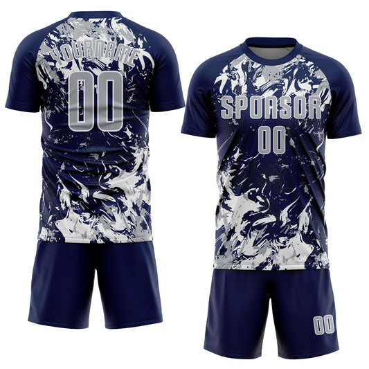 Custom Navy Gray-White Fluid Art Splash Sublimation Soccer Uniform Jersey Limited