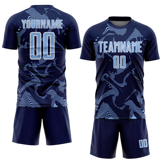 Custom Navy Light Blue-White Curve Lines Sports Sublimation Soccer Uniform Jersey Limited