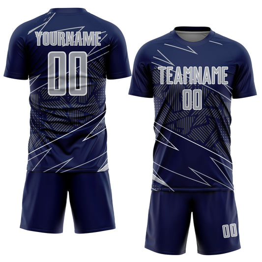 Custom Navy Gray-White Lines Sports Sublimation Soccer Uniform Jersey Limited