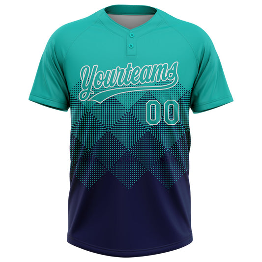 Custom Aqua Navy-White 3D Gradient Square Shape Two-Button Unisex Softball Jersey Limited